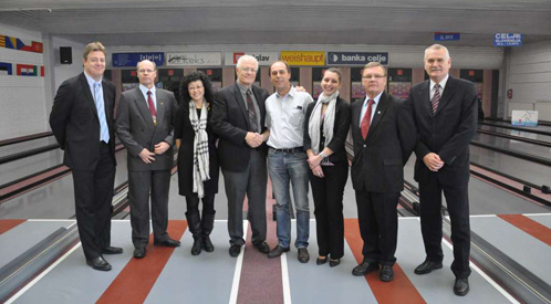 ![]() Andrew Frawley /Kuwait/, Pekka Korpi /FIN/, Kevin Dornberger /USA/, Ludwig Kocsis /AUT/, Siegfried Schweikardt /GER/, Tomaz Milac /SLO/ | 31.03.2012 Celje /SLO/ Die FIQ Präsidiumssitzung wurde am 31.03.2012 in Celje zum ersten Mal während einer Kegelveranstaltung ausgetragen. Durch die gute Präsentation haben wir beim FIQ Präsidium einen tollen Eindruck hinterlassen und volle Anerkennung bekommen.